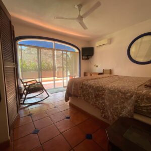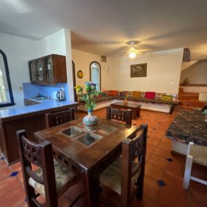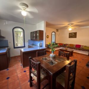 This traditional Mexican-style apartment offers one large master bedroom with a king-size bed, one bathroom, and a full kitchen, giving guests the essentials needed for both short-term vacations and longer stays. The property has a classic local character, with colorful details, covered outdoor areas, and a relaxed atmosphere that fits the charm of Mismaloya.