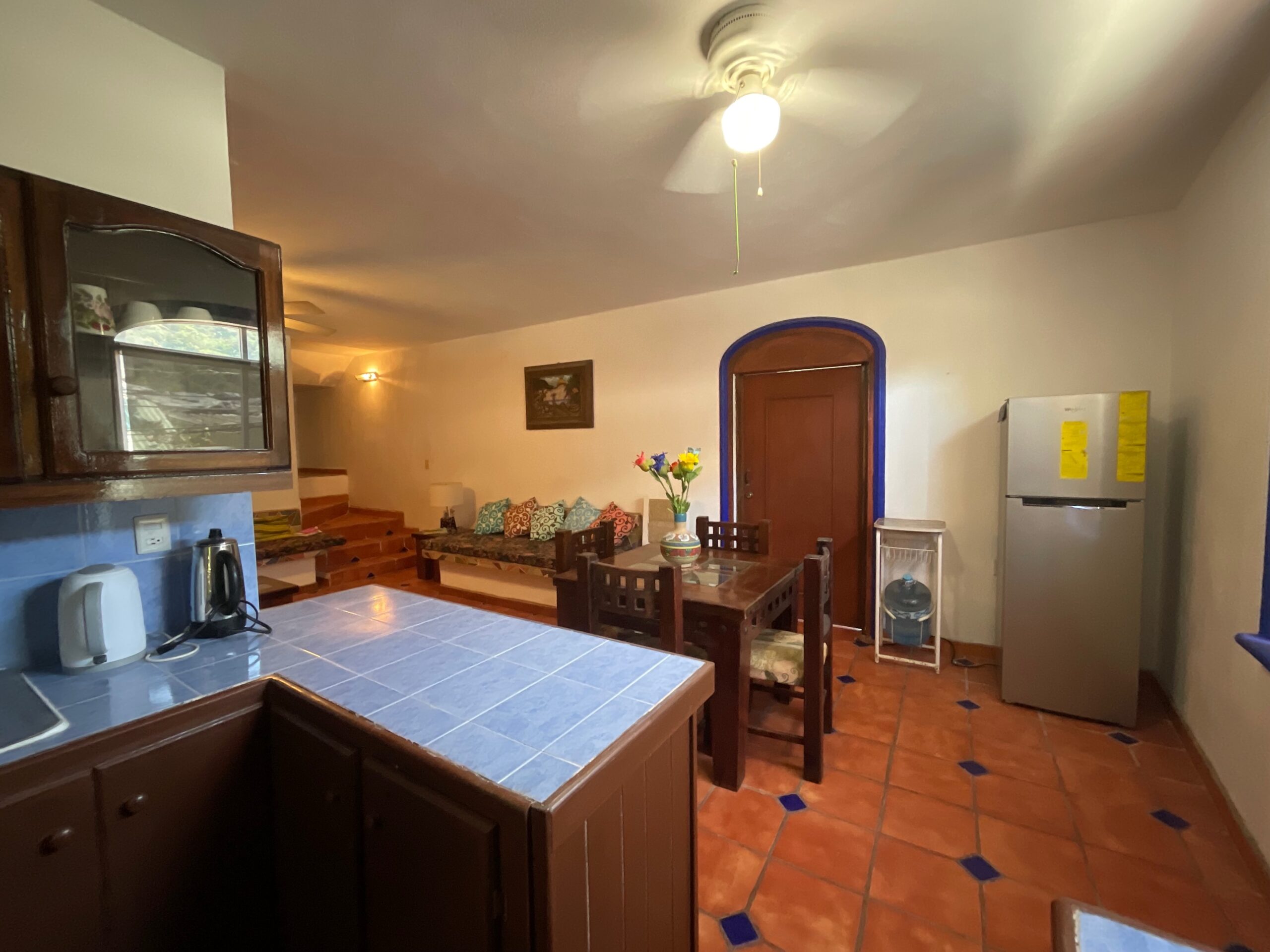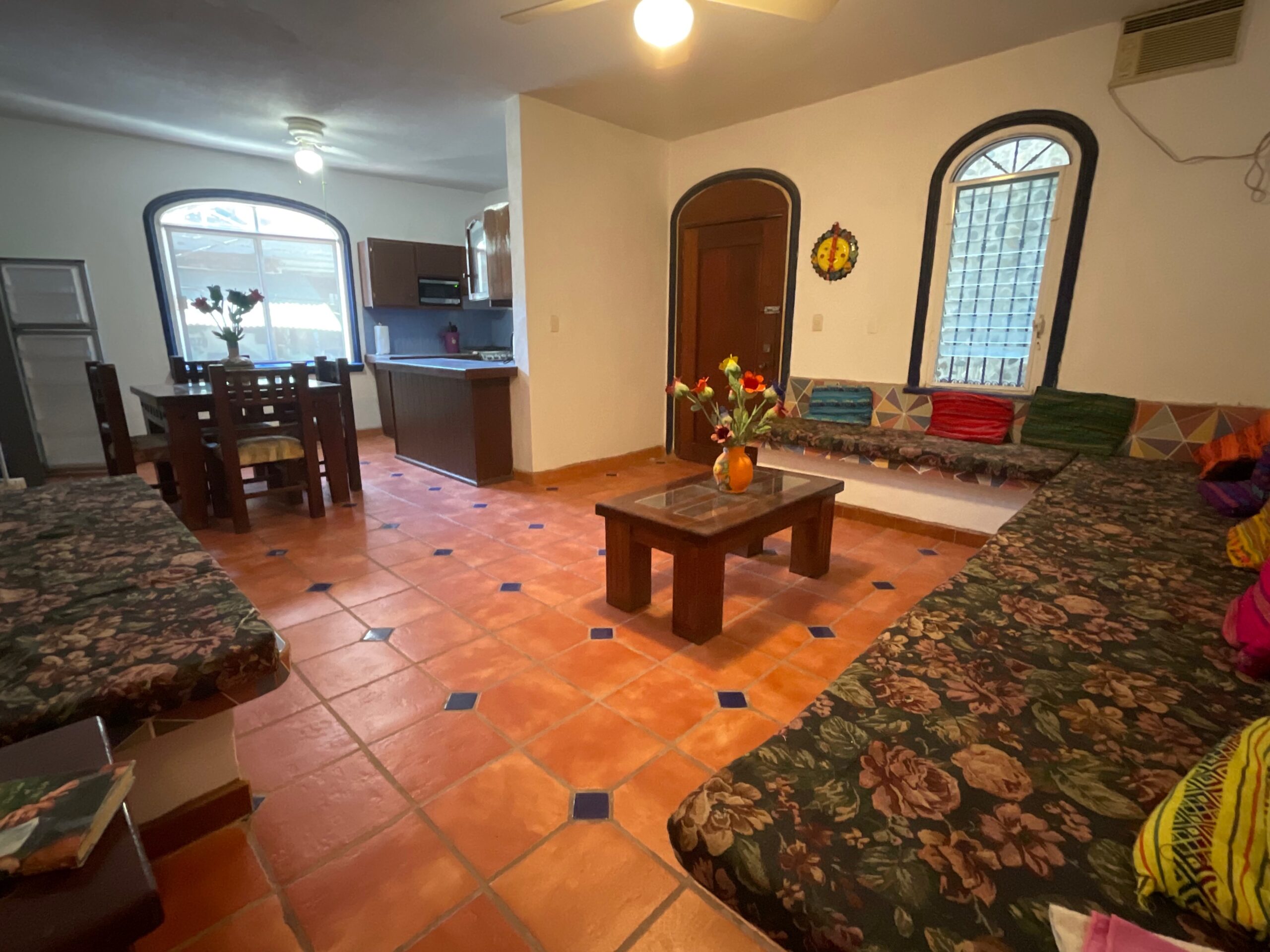 This traditional Mexican-style apartment offers one large master bedroom with a king-size bed, one bathroom, and a full kitchen, giving guests the essentials needed for both short-term vacations and longer stays. The property has a classic local character, with colorful details, covered outdoor areas, and a relaxed atmosphere that fits the charm of Mismaloya.